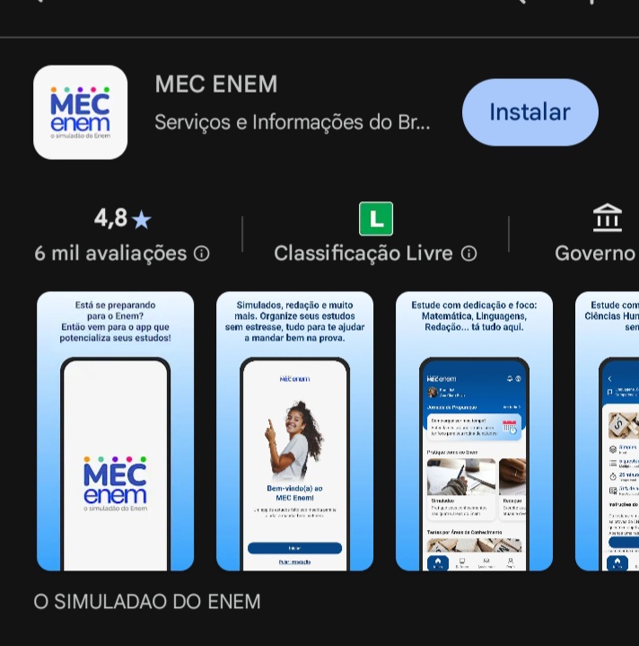 O MEC Enem é um aplicativo gratuito do Governo Federal criado para ajudar estudantes na preparação para o ENEM. Ele pode ser acessado pelo site oficial ou baixado em dispositivos Android e iOS, com login realizado pelo gov.br.