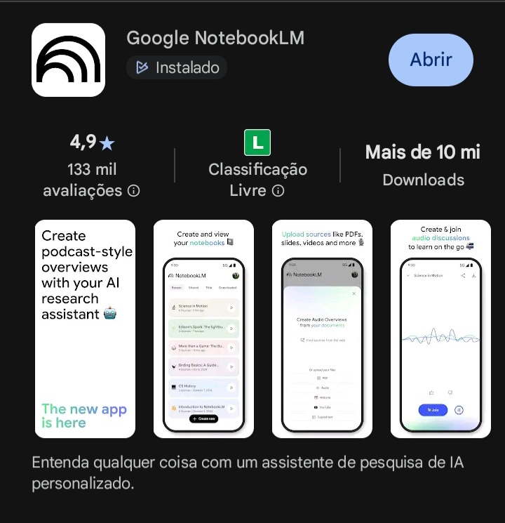 • criar podcasts de revisão (Audio Overview) a partir do conteúdo